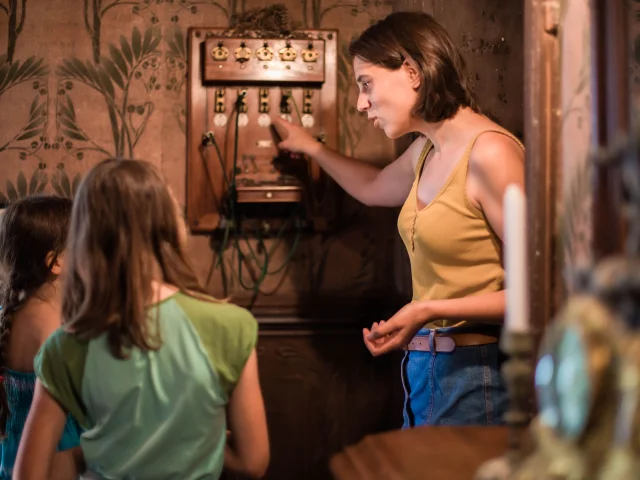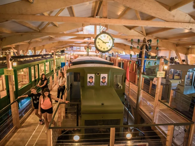 Je wordt aan boord genomen van een oude trein naar het Muséotrain, het hart van dit bezoek, waar reconstructies en scènes een moderne en ludieke scenografie vormen, allemaal vergezeld van geluid en visuele effecten voor een totale onderdompeling!