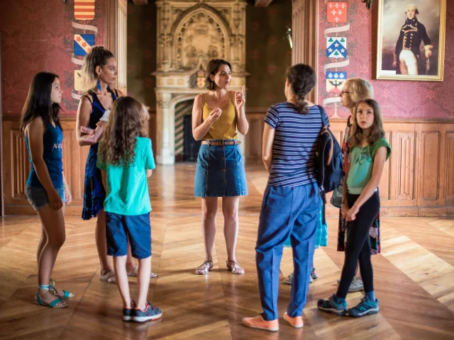 Bezoek onder begeleiding van gids Tiphaine het interieur van het prachtige Château de Courtanvaux, een bezienswaardigheid in de regio Perche Sarthois, gebouwd tussen de 15e en 19e eeuw.